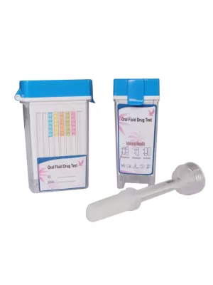 This Four Panel Saliva Drug Test with saliva indicator is everything that you hoped it would be. This drug test combines the simplicity of collecting human saliva and quick results. After collecting a saliva sample for approximately 7 minutes, the mouth swab can be secured into its container for instant results. The saliva indicator will confirm adequate saliva collection. This saliva drug test takes it a step further with the ability to photocopy your test results. This allows you to quickly print and/or deliver the test results. This oral fluid test is less invasive than a urine drug test and does not require a private bathroom. This simplifies the process and allows you to observe the testing, making it hard to adulterate the saliva sample